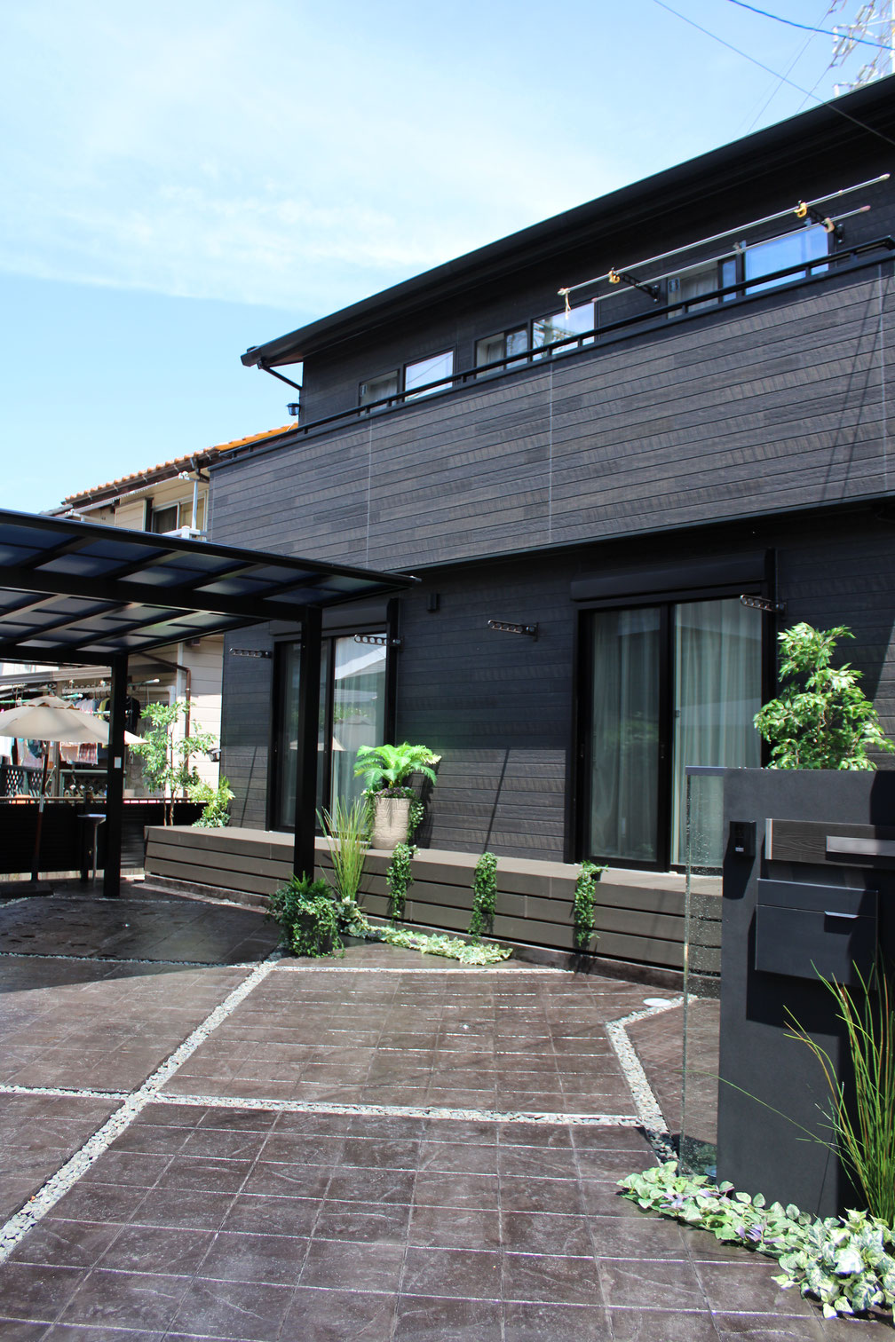 タイヤ跡レス・タフテックスは、ノーメンテナンスで、タイヤ跡が気になりません。外構は建物の顔です。いつまでもオシャレを愉しめますよ。