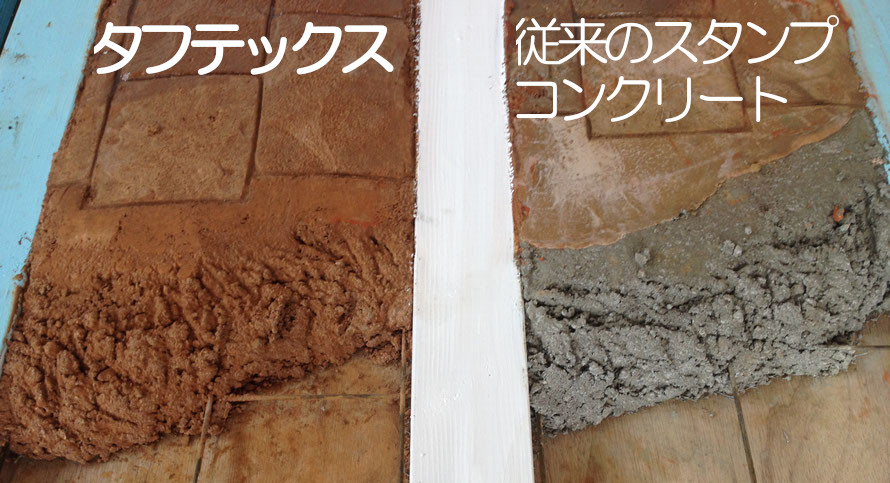 また、下記画像の通り、タフテックスは色が中まで練り込んであるので、色の剥がれはありません。(特許出願済工法)
